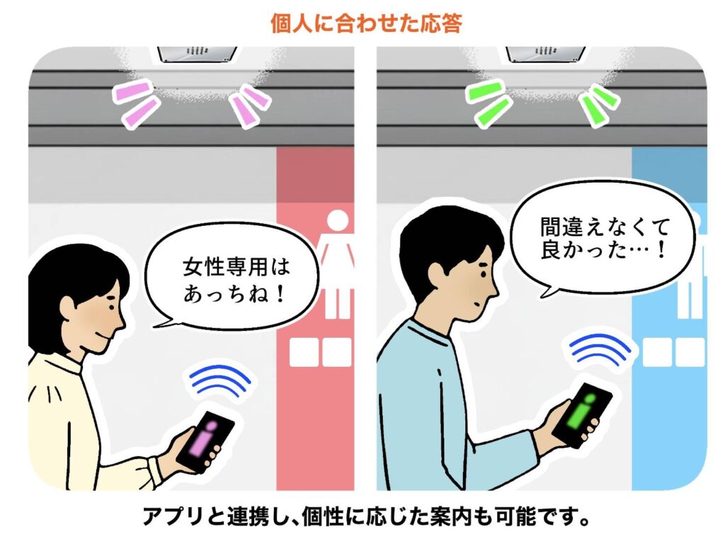 Bluetooth®感知音:トイレ入口はこちらです。