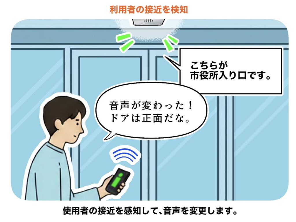 Bluetooth®+センサー感知音:「○○市役所正面玄関です。」